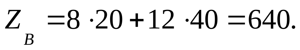 Поскольку в выражении целевой функции коэффициенты при и положительные, то при увеличении значений этих переменных целевая функция возрастает. Следовательно, минимальное значение целевой функции Zmin=640 соответствует нулевым значениям переменных и , а полученное решение является оптимальным (см. вершину B на рис. 2).