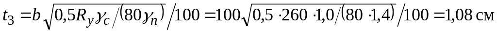 6. Расчетная толщина обшивки из условия обеспечения устойчивости при работе в составе присоединенного пояска ригеля