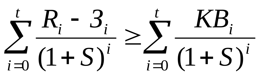 Инвестиционный проект считается эффективным, когда при заданной норме дисконта (S) соблюдается следующее условие: