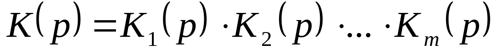 Окончательный этап синтеза фильтра состоит в построении его электрической принципиальной схемы. Для этого может быть использован подход на основе так называемого структурного синтеза, когда цепь с передаточной функцией К(р) образуется путем последовательного (каскадного) включения некоторого числа звеньев с передаточными функциями Кi(р), i =1,…m - число звеньев (рис.7).