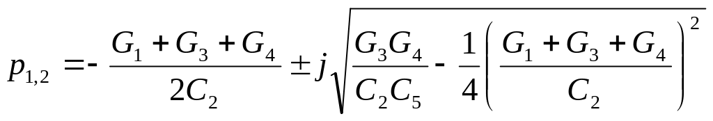 Как известно из разд.4, эти полюсы соответствуют фильтру Баттерворса 2-го порядка. Для перехода к ненормированным полюсам Р1,2 необходимо нормированные полюса домножить на значение частоты среза ωс. т.е.