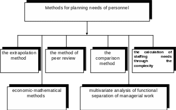 H = T • R / Fn (2.1) T - total complexity of all the works carried out during the year in the personnel department, man-hour.; K - factor, taking into account the time spent on work not covered by T (K = 1,15); Fn - a useful fund of working time per employee per year, per hour. Currently, domestic enterprises are widely acquired such methods of planning staffing needs as an extrapolation method, the method of adjusted extrapolation method of expert evaluations and the method based on the complexity of work (time).