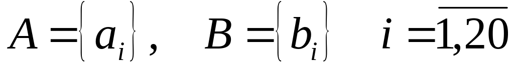 Для двох файлів А та В, які складаються з 20 елементів: необхідно обчислити значення