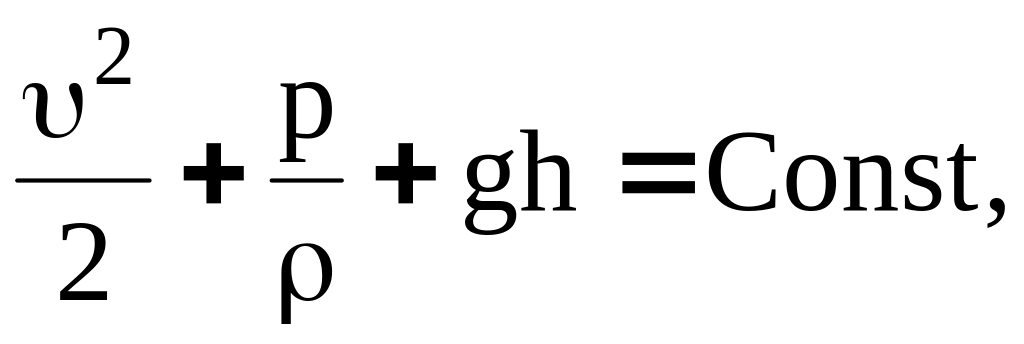 где g — ускорение силы тяжести, h — высота относительно горизонтальной плоскости. Уравнение это выражает закон сохранения энергии, что сразу видно, если умножить его части на ρ (первый член дает кинетическую энергию, сумма второго и третьего — потенциальную энергию, соответствующую давлению и внешним силам). Отметим, что Бернулли впервые проводит различие между гидростатическим и гидродинамическим давлением. Как известно, уравнение Бернулли с соответствующим учетом сил трения получило широкое применение в гидротехнике и является одним из основных в динамике газов.