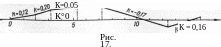 Для того чтобы изобразить первый участок, т. е. провести прямую с уклоном откладываем от начала координат по оси х 100 произвольных единиц, в конце этого отрезка восставляем перпендикуляр высотою в 12 таких же единиц и полученную точку соединяем с началом. Другими словами, мы должны построить прямоугольный треугольник с катетами 100 и 12. Тогда его гипотенуза будет иметь уклон k = 0,12 по отношению к катету 100. Остальные участки строим аналогично. Весь профиль пути изображен на рис. 17, причем положительным значениям k соответствуют подъемы, а отрицательным k — спуски. При k = 0 путь идет горизонтально.