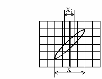 Измерение фазового угла коэффициента передачи тока транзистора производится с помощью осциллографа. На вход Y осциллографа подается напряжение UВХ. На вход Х осциллографа подается напряжение с коллектора транзистора (гнездо К). При этом в общем случае для произвольного сдвига фаз между входным и выходным токами на экране осциллографа получается изображение в виде эллипса (рисунок 3.2).