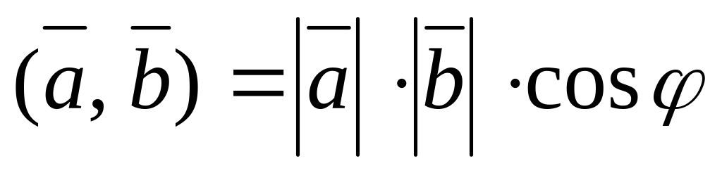 Означення 13. Скалярним добутком двох векторів називається число, яке дорівнює добуткові їх абсолютних величин на косинус кута між ними.