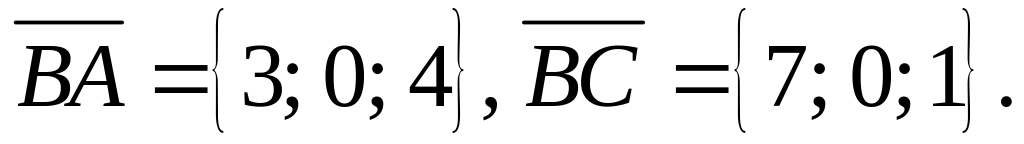 Приклад 12. Точки А(-1; 2; 4), В(-4; -2; 0), С(3; -2; 1) є вершинами ΔАВС. Знайти його внутрішній кут при вершині В.