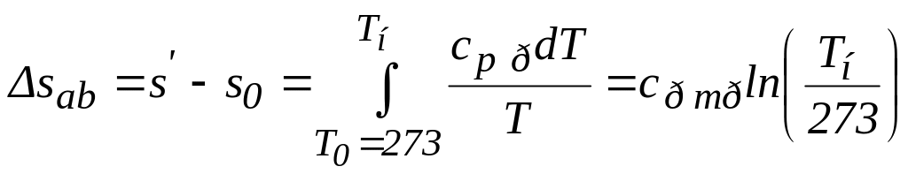 тобто на „T-s” діаграмі, див. рис.7.4б, ізобарний процес зміни стану води зображається логарифмічною кривою ab. Оскільки питома ентропія води при 0 ºС умовно рівна нулю, точка а на осі ординат буде знаходитися на 273 ºС вище від абсолютного нуля.