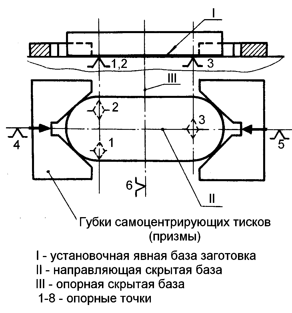 І – установочная явная база; ІІ – направляющая скрытая база; ІІІ – опорная скрытая база