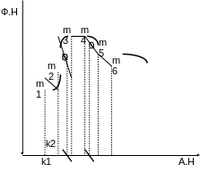 К2 – шаг изменения аргумента, т.е. квантованное расстояние между проекциями точек функций, задаваемых массивом М на ось абсцисс. Так точке м2 соответствует аргумент К1+К2; точке м3 – аргумент К1+К2+К2 или К1+2К2.