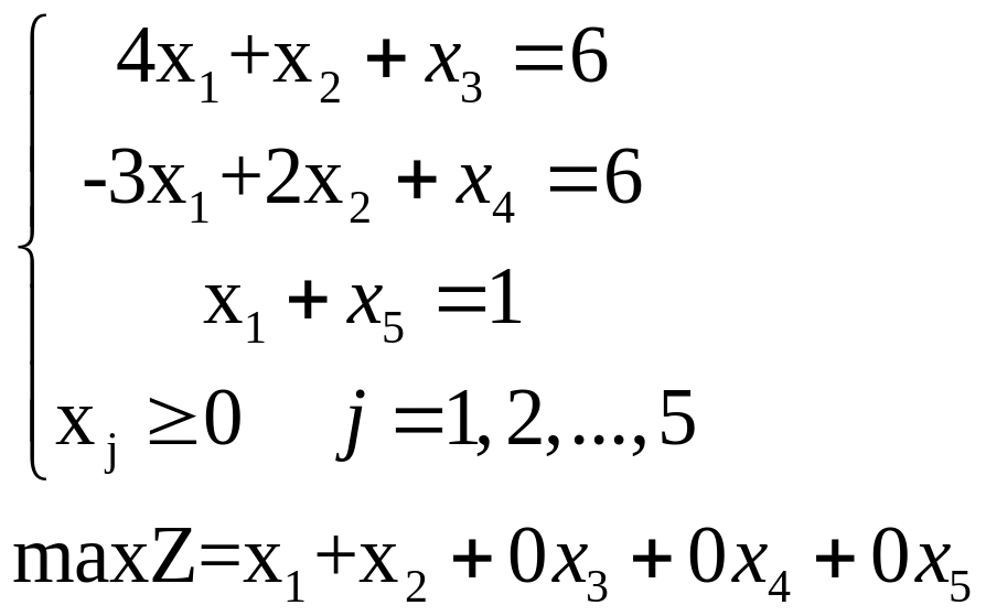 Введя в ограничения дополнительные переменные, перейдем от однородной формы задачи к канонической форме. Получим: