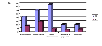 Рис. 1. Прирост показателей физической подготовленности в % соотношении в контрольной и экспериментальной группе.