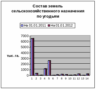 - •Структура земельных угодий на 01.01.2012 (тыс. Га.)