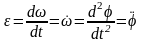 Угловым ускорением тела в какой либо момент времени называют первую производную от его угловой скорости или второй производной от угла поворота по времени