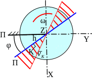 В сечении тела вращения плоскостью перпендикулярной оси вращения видно, что при повороте тела на угол φ