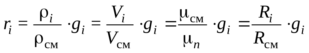 Иногда состав смеси задают объемными долями ri, т.е. отношением парциального объема компонента Vi к объему смеси Vсм
