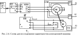 Схема для исследования асинхронной машины представлена на рис. 2.4.