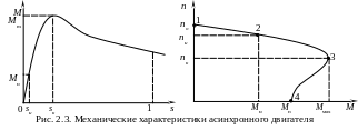 Важной характеристикой асинхронного двигателя является зависимость момента от скольжения М = f(s) (рис. 2.3)
