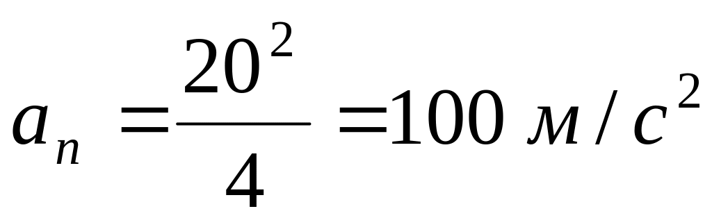 Пример 2. Точка движется по окружности радиусом R = 4 м согласно уравнению S = A + Bt2 + Ct3, где A = 4 м/с, B = 2 м/с2, C = 1 м/с3. Найти тангенциальное, нормальное и полное ускорение точки в момент времени t = = 2 с.