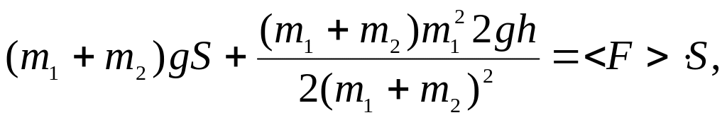 Решение. По условию задачи удар неупругий и поэтому груз и свая после удара движутся вместе, их путь 4 см. На движущуюся систему действует сила тяжести и сила сопротивления грунта <F>. По закону сохранения энергии