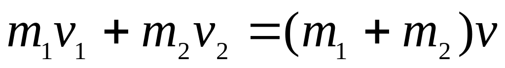 Решение. Так как удар неупругий, то после удара шары будут двигаться с общей скоростью v. Закон сохранения импульса при этом ударе имеет вид