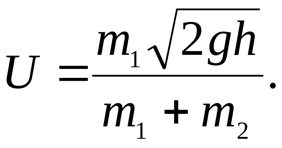 где U – общая скорость груза и сваи после удара (в начале их совместного движения), которую можно найти из закона сохранения импульса