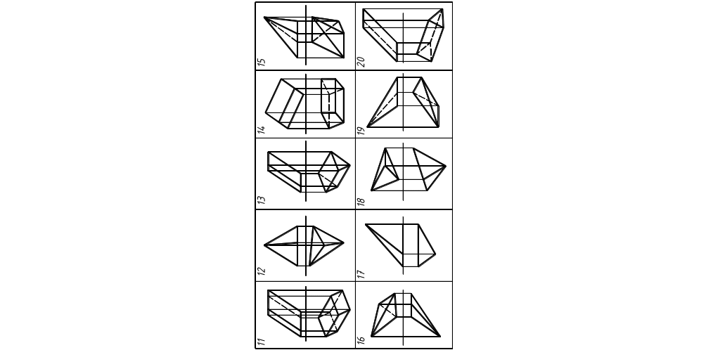 1. Побудувати відповідно до номера варіанта (таблиця 3) фронтальну і горизонтальну проекції многогранника на комплексному ортогональному кресленні.