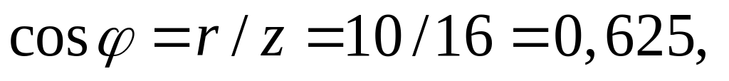 Поділивши сторони трикутника напруг (рис. 4.13,б) на діюче значення струму І, одержимо трикутник опорів (рис. 4.13,в). Із трикутника опорів визначимо коефіцієнт потужності схеми cos φ