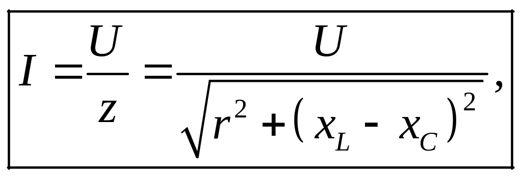 Співвідношення (4.28) – це закон Ома, записаний в класичній формі: тут U та І – діючі значення напруги та струму; z – повний опір кола, Ом; x – реактивний опір кола, Ом.