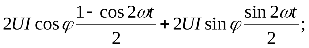 s(t) = и і = Um sin(ω t+φ) · Іт sin ω t = 2UI sin ω t(sin ωt cos φ+cos ωt sin φ) =