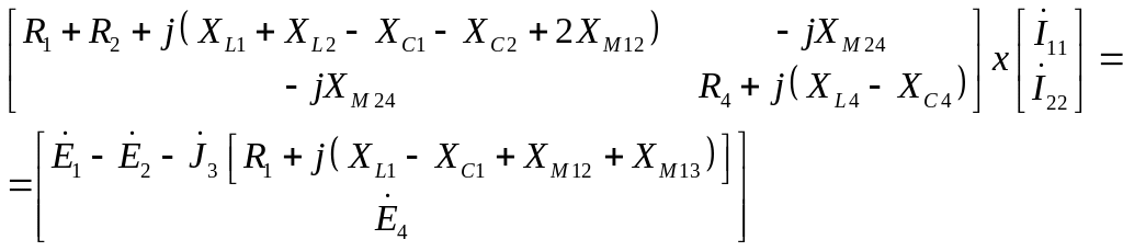 Розрахунок системи рівнянь, складеної за допомогою методу контурних струмів: Представимо систему рівнянь у такому вигляді: