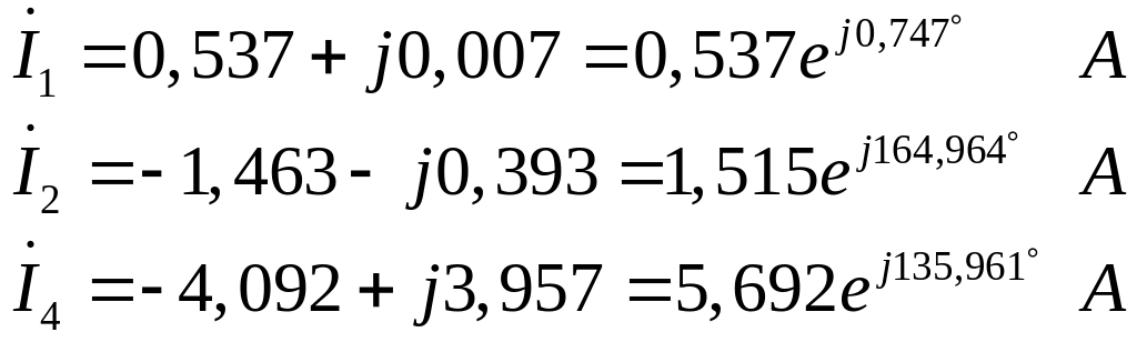 4. Таким чином, ми отримали наступні значення комплексних струмів у гілках.