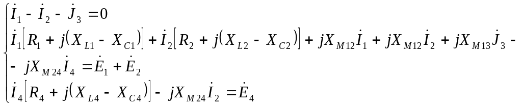 1. Розрахунок розгалуженого кола при наявності взаємної індуктивності можна вести, складаючи рівняння по першому й другому законах Кірхгофа. При цьому необхідно враховувати, що струм у будь-якій гілці залежить не тільки від ЕРС джерела, яке знаходиться в ній і від потенціалів тих вузлів, до яких вона приєднана, але також і від струмів інших гілок, які наводять ЕРС взаємної індукції.