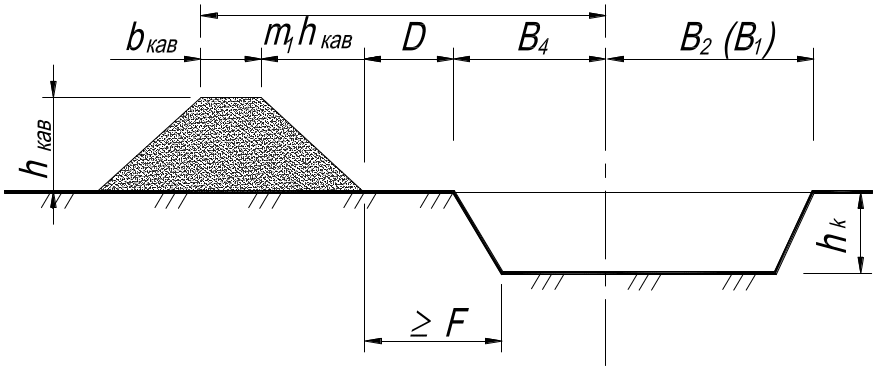 Рис. 15.3. Схема к определению В4 при отсыпке грунта экскаватором обратная лопата на бровку