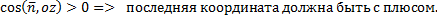 Связь знаков координат и выбора стороны поверхности определяется по углу который составляет нужный намм орт с осью разрешённый координаты( в данном случае с осью oz)