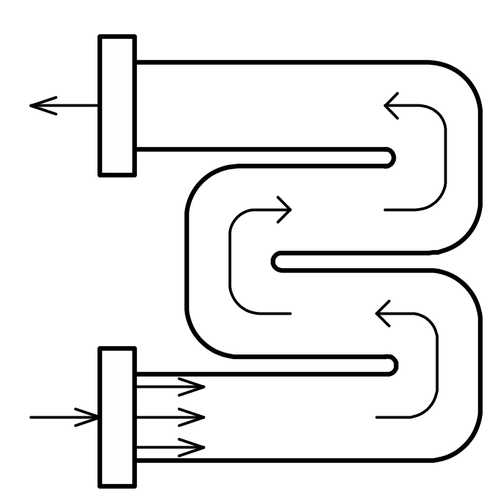 Для снижения гидравлической неравномерности распределения среды по параллельным трубам должен использоваться рассредоточеннный подвод и отвод среды в коллекторах.