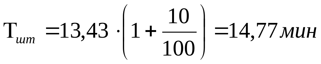 где Топ - оперативное время, nобс,отд – норматив времени на обслуживание рабочего места и отдых ( 10% от оперативного времени).