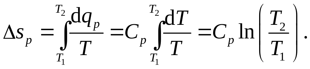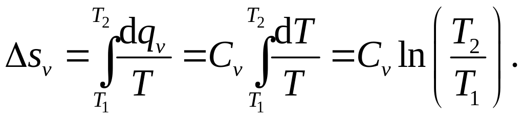v = const , располагаемая работа |lpv| = |vp| , работа расширения lvv = 0 , из первого закона термодинамики dqv = du qv = u = CvT . При отсутствии фазового перехода, считая C = Cv = const , получаем для энтропии выражение