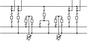 «Одна рабочая секционированная выключателями и обходная системы шин с подключением трансформаторов к секциям шин через развилку из выключателей»