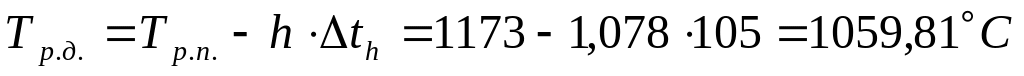 Внутренняя поверхность рабочего слоя подины копильника контактирует с основным расплавом. При высоте расплава 1,078м и падении его температуры по глубине 105 град./м находим температуру расплава на поверхности рабочего слоя подины: