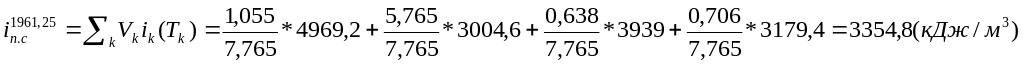 а затем удельную энтальпию продуктов сгорания расчетного состава при калориметрической температуре: