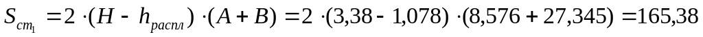 Площадь стен под уровнем расплава