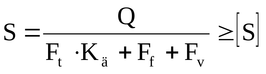 Расчёт по запассу прочности S выполняют для цепей быстроходных передач(V >= 10 м/с), в которых возможны большие внутренние нагрузки, а также цепей тихоходных передач (V >= 2.5 м/с).