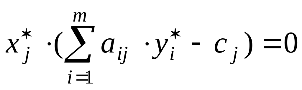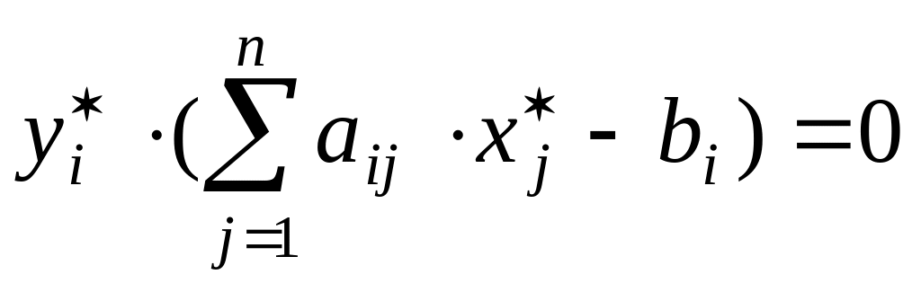 Теорема 2: пусть = (х1*, х2*, … хn*) - допустимое решение прямой задачи, а = (y1*, y2*, … ym*) - допустимое решение двойственной задачи. Для того чтобы и были оптимальными решениями необходимо и достаточно, чтобы выполнялись следующие соотношения: