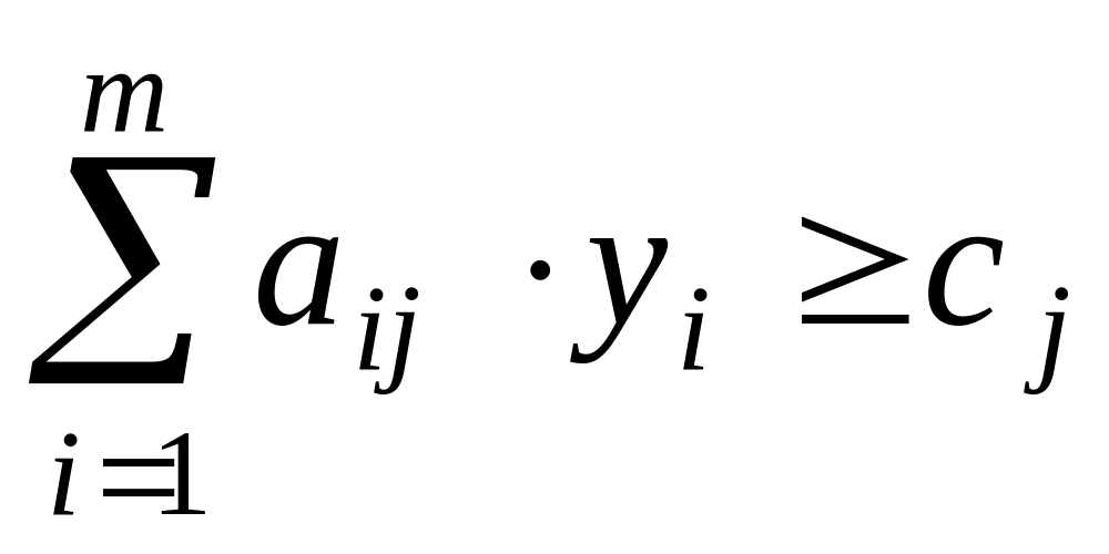 Переменные у показывают оценку единицы соответствующего ресурса, показывает как повлияет на конечный результат деятельности (суммарный доход) дополнительная единица соответствующего ресурса. Целевая функция F – оценивает все ресурсы, которыми располагает предприятие.