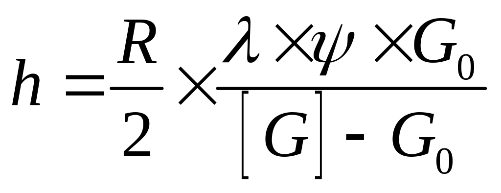 Наближена формула для визначення довжини потовщеної ділянки обичайки має вигляд: