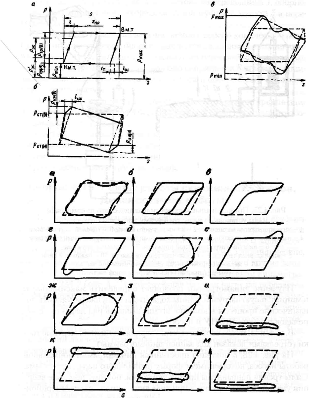 (пунктиром показаны линии теоретической динамограммы).