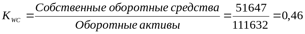 Наличие собственных оборотных средств для формирования запасов и затрат:
