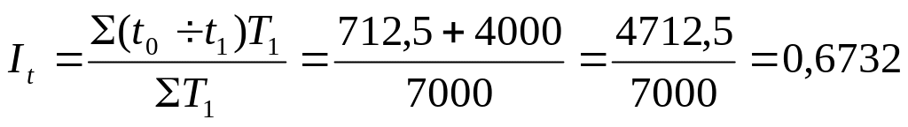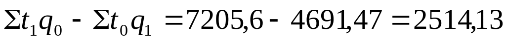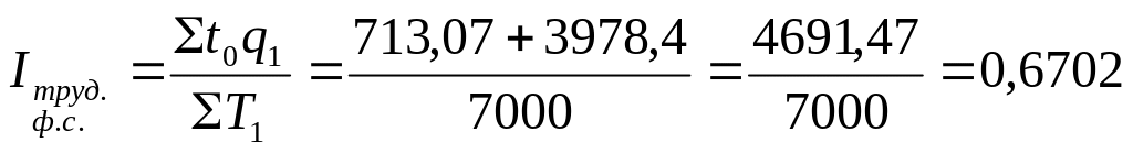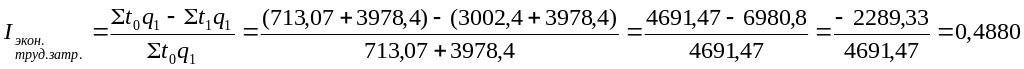 Важным для анализа производительности труда является расчет экономии и перерасчета трудовых затрат. Поэтому рассчитаем общий индекс трудовых затрат.